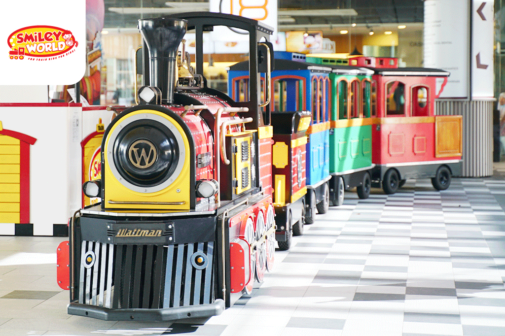 Experience a fun and enjoyable train ride around shopping malls with Smiley World.