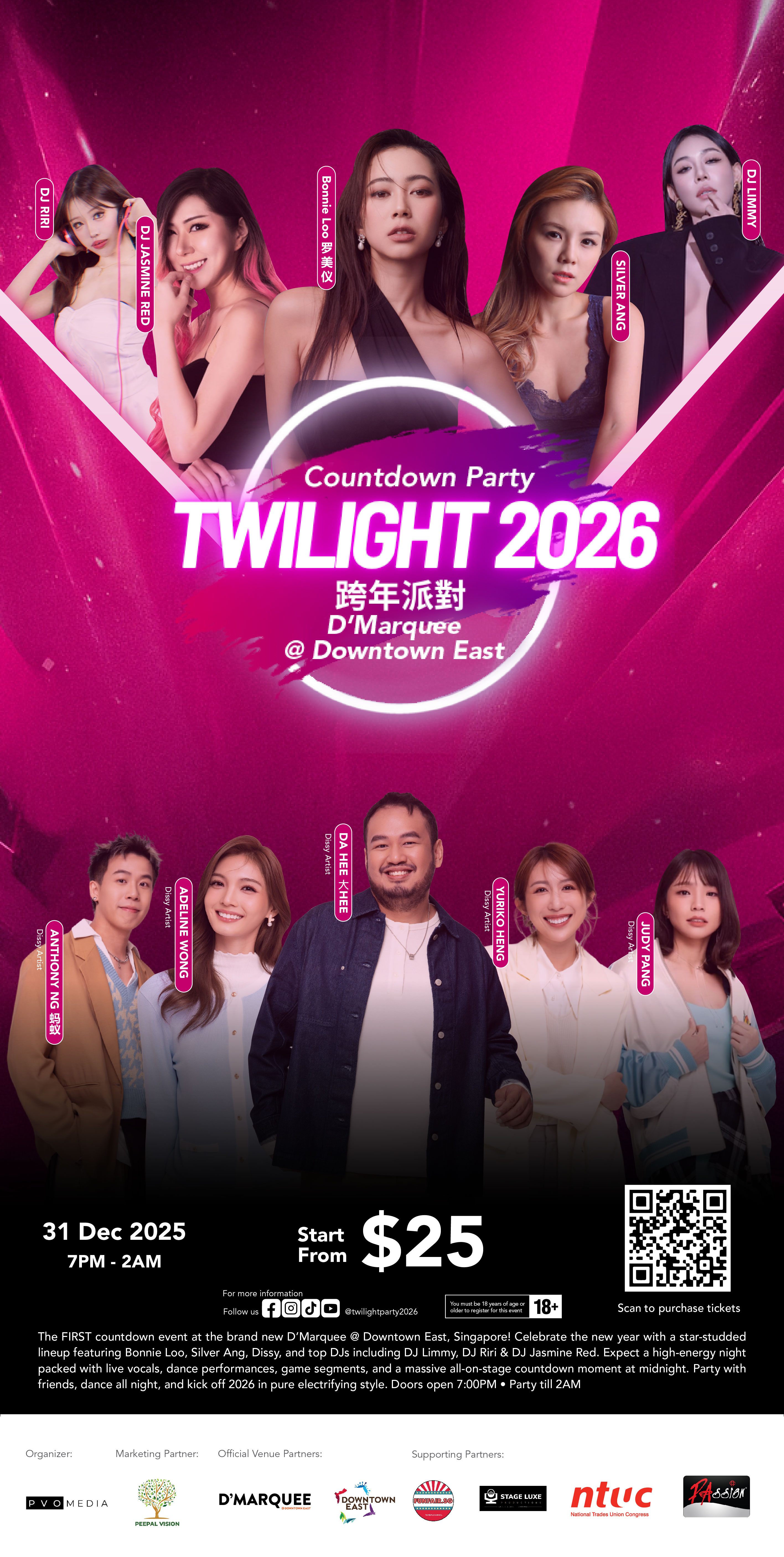 Twilight 2026 is gearing up to be Singapore’s biggest New Year’s Eve celebrationπ. Tickets are officially on sale, so grab yours now before they sell out. Step into a night packed with star power, electrifying energy, and unforgettable memories. β¨π₯