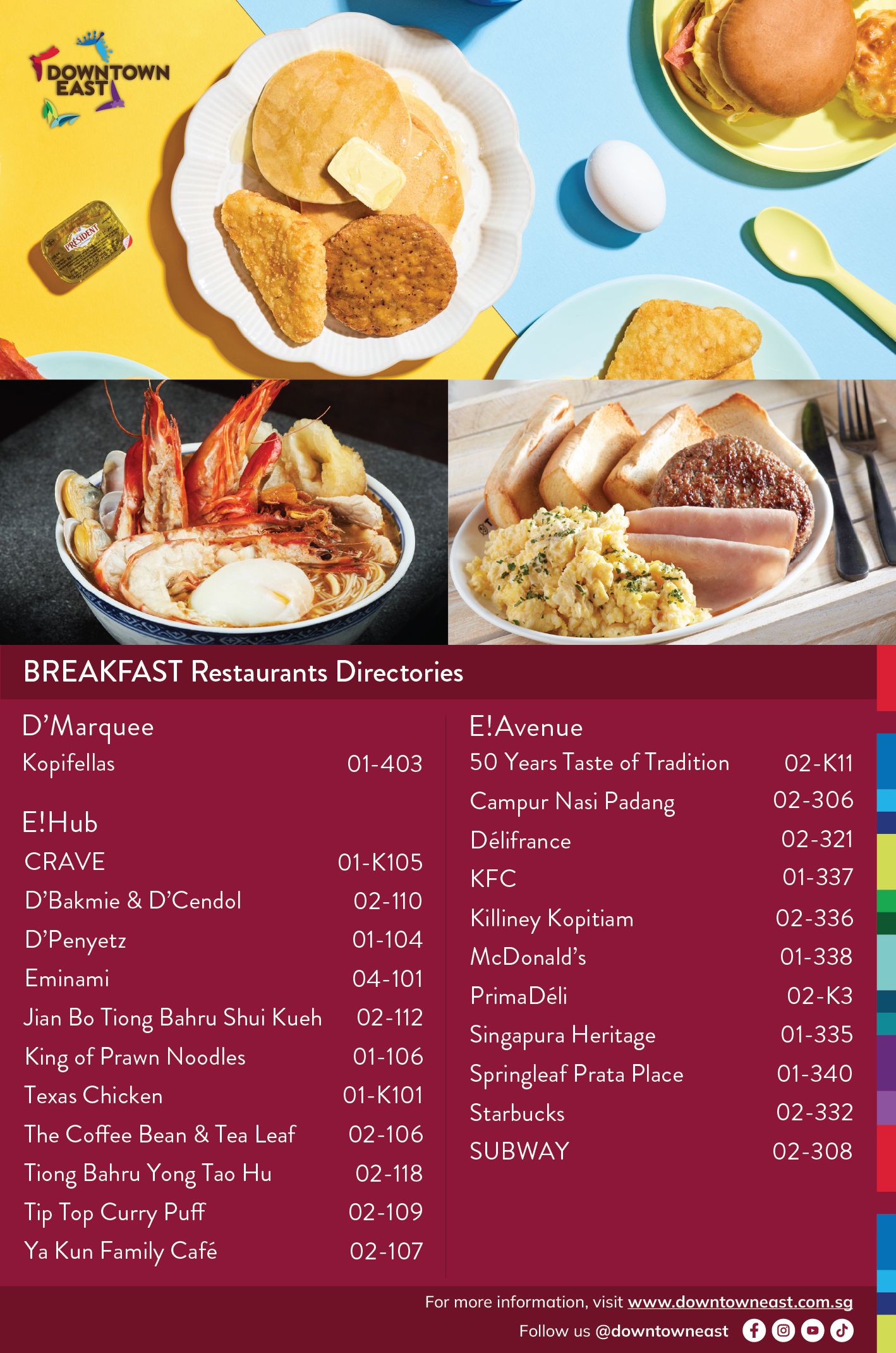 Breakfast sets the tone for the day and at Downtown East, you’ll find a vibrant mix of flavours to kickstart your morning just the way you like it! Whether you prefer something warm and comforting, crispy and indulgent or light and familiar, our breakfast spots offer a little something for every craving.