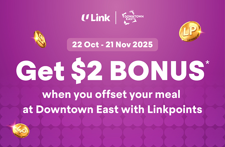 Redeem min. 200 Linkpoints in a single transaction at any of the following stores at Downtown East and earn 200 bonus Linkpoints worth $2!